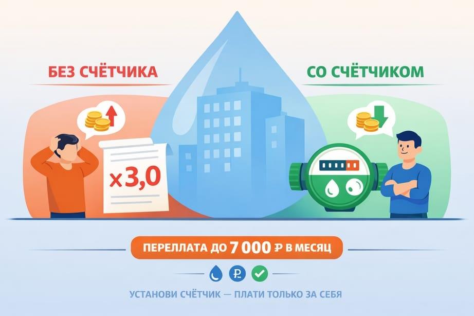 Подводя итог: в 2026 году жизнь без счётчика стала значительно дороже. Повышающий коэффициент 3,0 для холодной воды — это не временная мера и не ошибка в квитанции. Это новая реальность, в которой переплата для семьи из трёх человек составляет 5 000–7 000 рублей в месяц сверх реального потребления. Установка счётчика окупается за 1–2 месяца, занимает полдня и избавляет от этой ситуации навсегда.